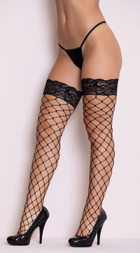 Fishnet Thigh High Stockings with Lace Top