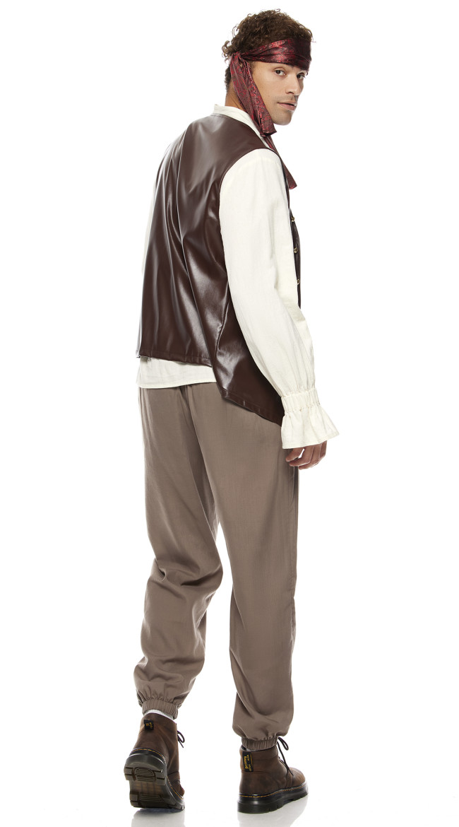 • Shirt: 100% Cotton; Vest & Belt: 100% Polyurethane; Pants: 90% Polyester 10% Cotton; Headscarf: 100% Polyester