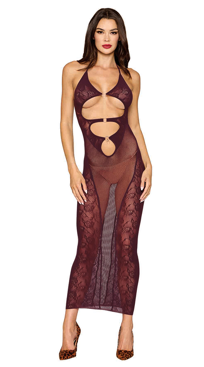 • Knitted lace and fishnet patterns, halter neck ties and keyhole cutouts with rings details