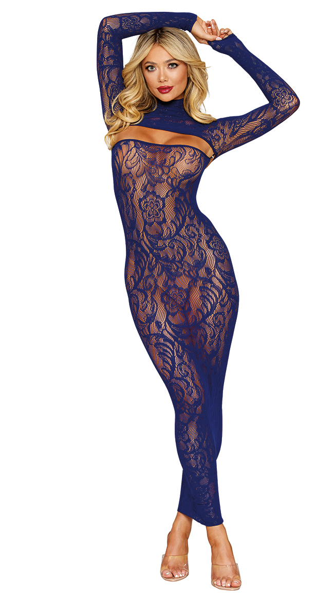 • Seamless bodystocking gown and matching shrug with floral pattern design