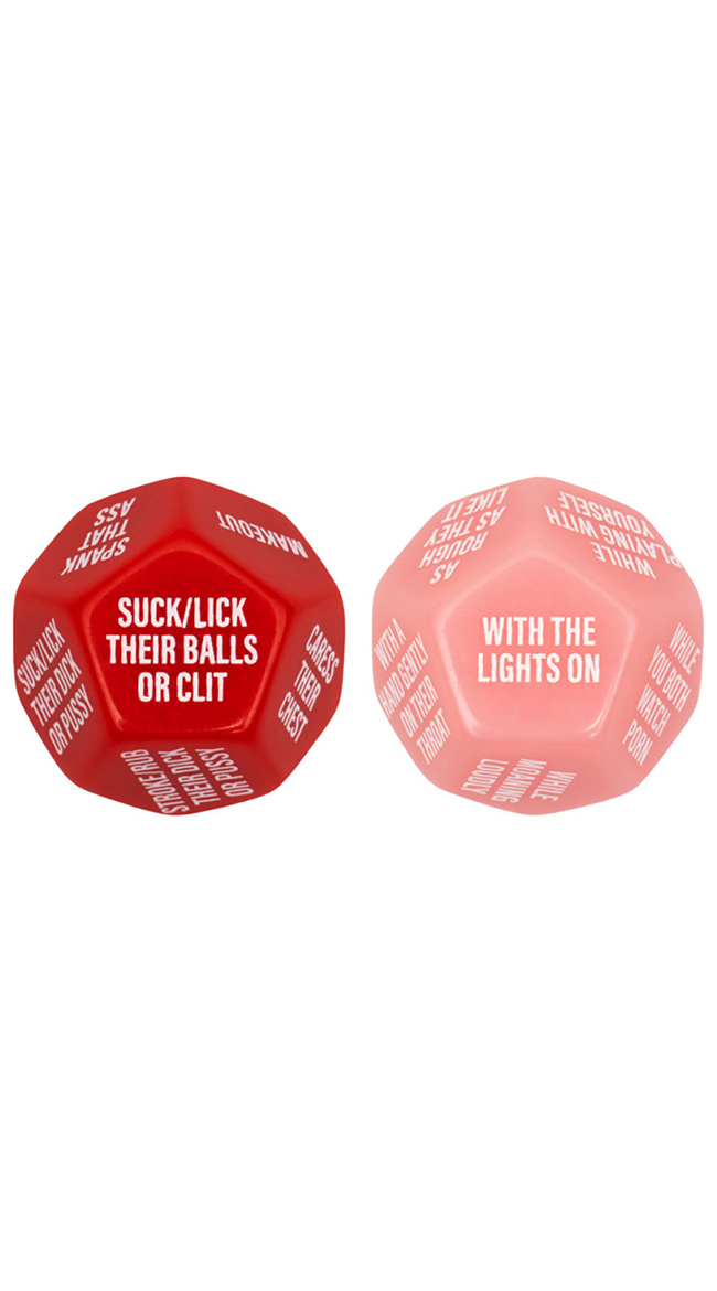 Roll play with this all-inclusive Sex Dice adult couples game! Features two large 28mm 12-sided dice that tell you and your partner what to do, if you dare. For Straight or Gay couples. Take date night or any night to a whole new level!