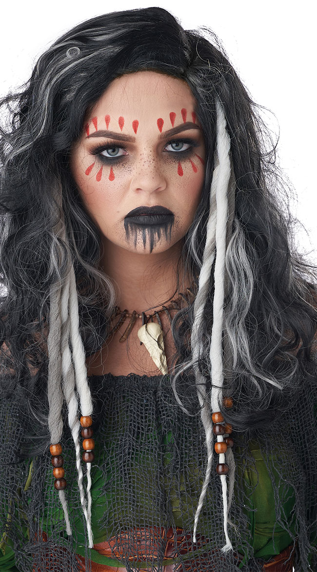 Perform your magic in these stunning clip-in hair dreads featuring a silvery white hue, and beaded ends. (Makeup, wig, necklace, and costume not included.)