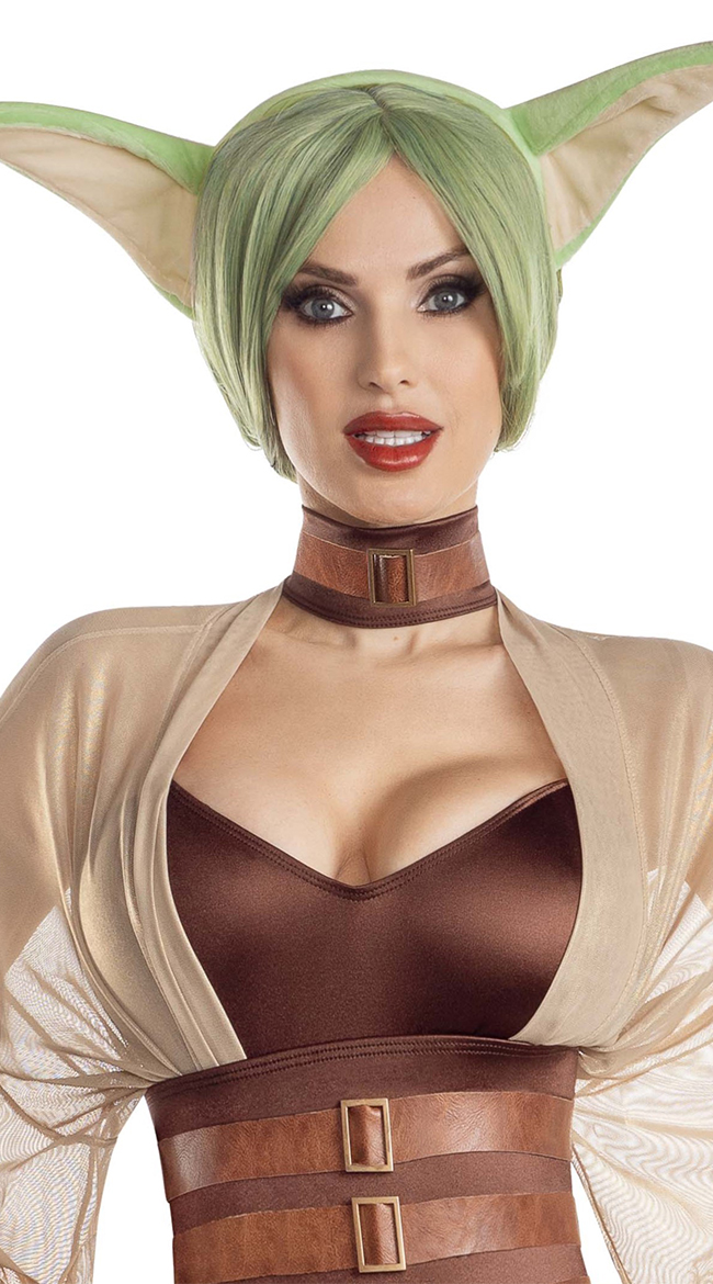 • Belted neckpiece, garters, waist cincher, and an iconic headpiece