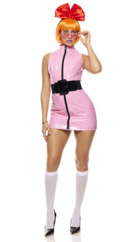 • Mockneck vinyl mini dress