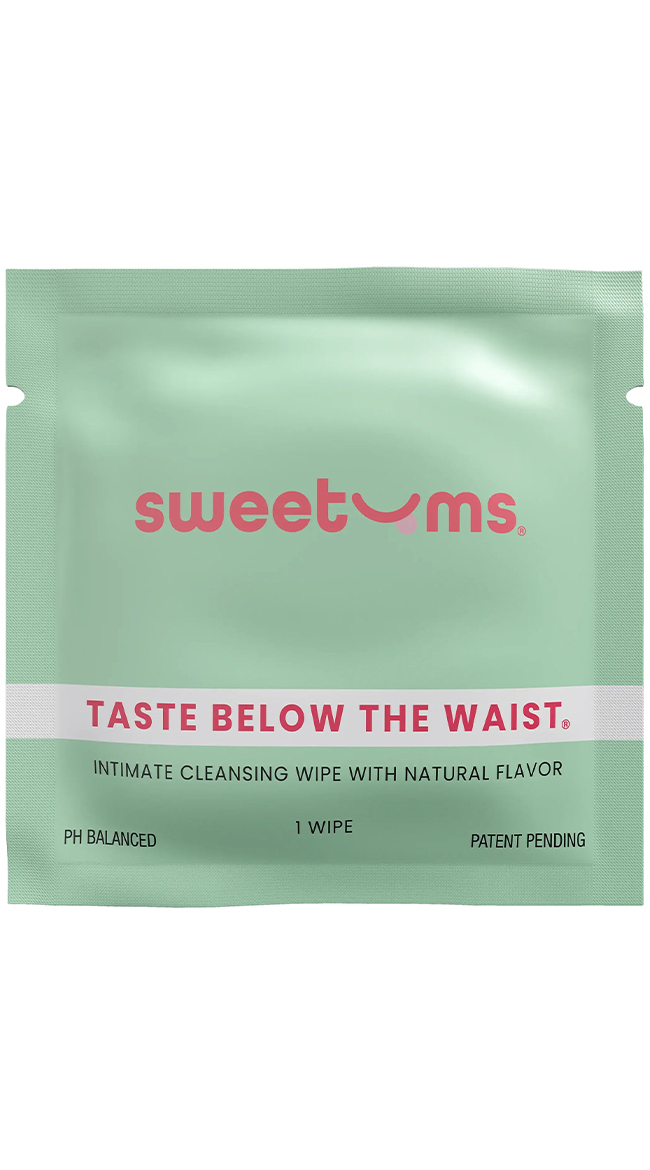 • Paired with two packets of Watermelon-flavored Sweetums pH-balanced intimate wipes