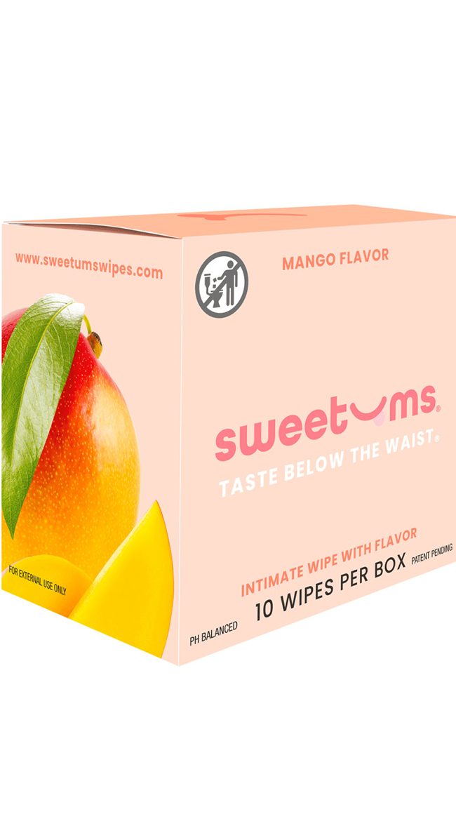 • Individually packaged, pH-balanced feminine wipes, mango flavored
