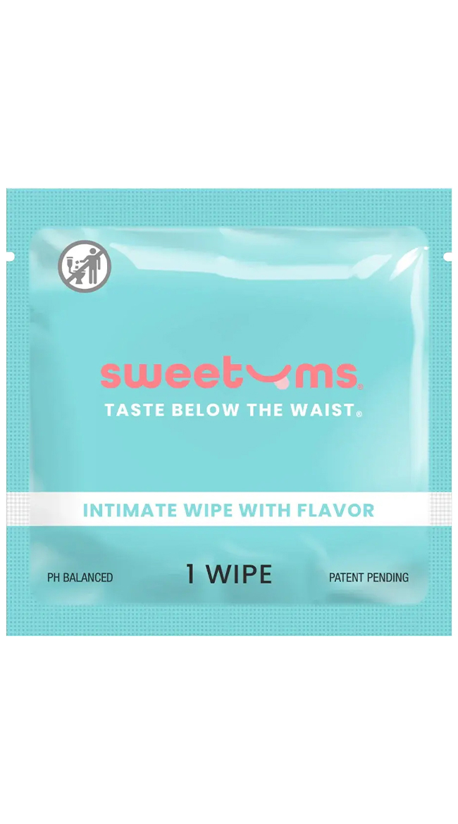 • Paired with two packets of Cinnamon Buns-flavored Sweetums pH-balanced intimate wipes