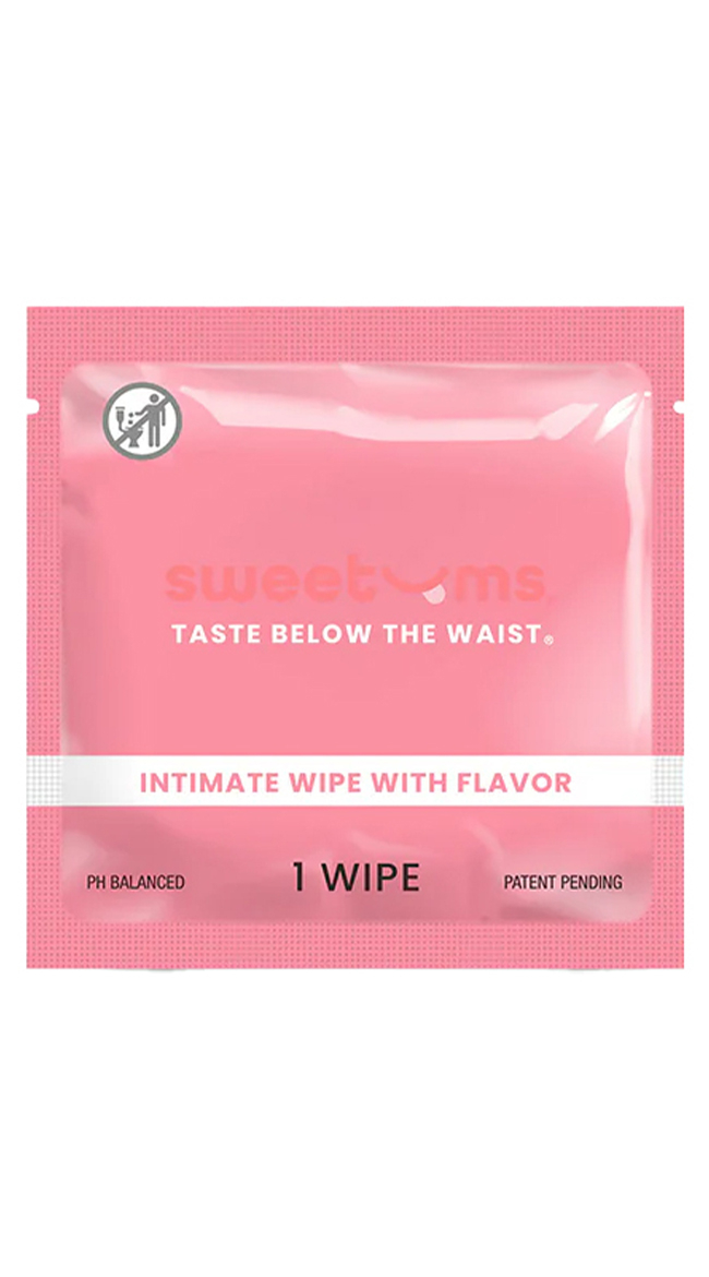 • Paired with two packets of Cherry-flavored Sweetums pH-balanced intimate wipes