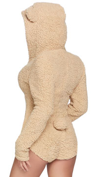 Go into hibernation mode cause you'll be cuddled all night long in this Teasing Teddy costume featuring a light brown soft plush zip-up romper, a cute hood with teddy bear ears, and a fuzzy puff tail.