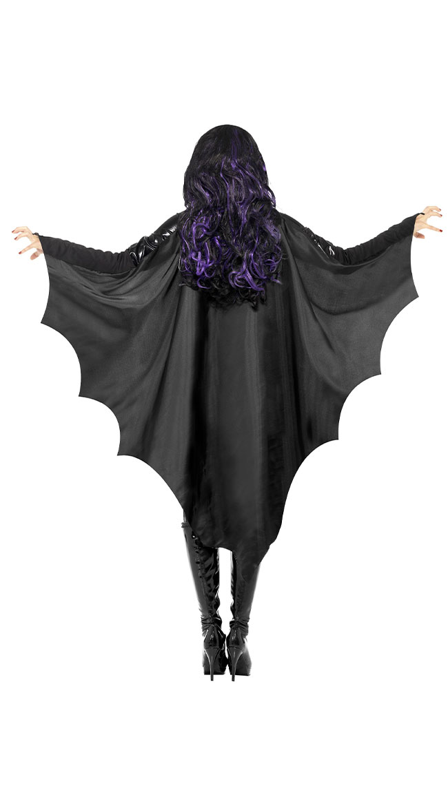 Hang from spooky caves in style! Fly for justice with your trusty sidekick in these matte black bat wings featuring a scalloped edge, an inverted triangle shape, slip on forearm coverings, and an attached collar. (Bodysuit, boots and wig not included.)