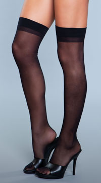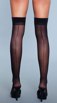 Highlight your legs in these sexy stockings featuring solid tops, a sheer nylon, a solid back seam, and an over the toe style.